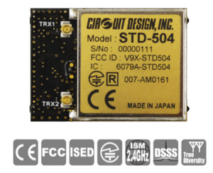 The STD-504 is a radio transceiver module enabling reliable communications even in the congested 2.4 GHz band.